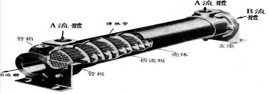 (3)交流式:冷流體在管內流動,熱流體在管外,兩者以垂直或接近垂直方通過者。(如下圖)